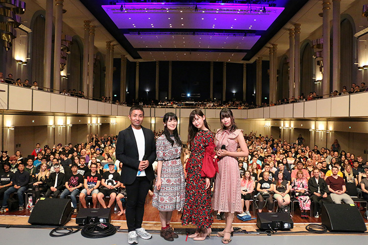 石川さんがGuten Tag(グーテン・ターク、ドイツ語でこんにちは)と挨拶すると、会場は大盛り上がり。するとMCから、観客のファンたちは日本語での挨拶を待っているのでぜひお願いしたいという要望があり、TRUEさんは「みなさん、こんにちは」と挨拶。会場全体から「コンニチハー!」と観客たちの大きな声が響いた。