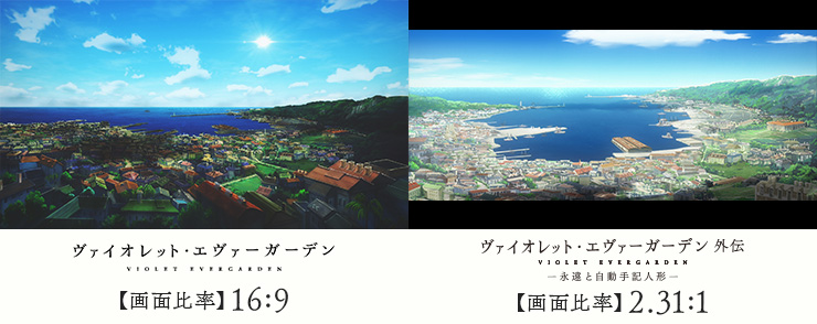 この画面サイズでの制作を最初に提案したのは藤田監督で『ヴァイオレット・エヴァーガーデン』を映画館で観る適切な映像作りとはなんなのか、石立監督とディスカッションを重ねていました。それによって空や海、山々が広くダイナミックに描かれています。制作で使用する紙のサイズも構図に必要なエッセンスも変わるので、『外伝』に引き続き、制作陣にとっても挑戦となる作品になりました。
